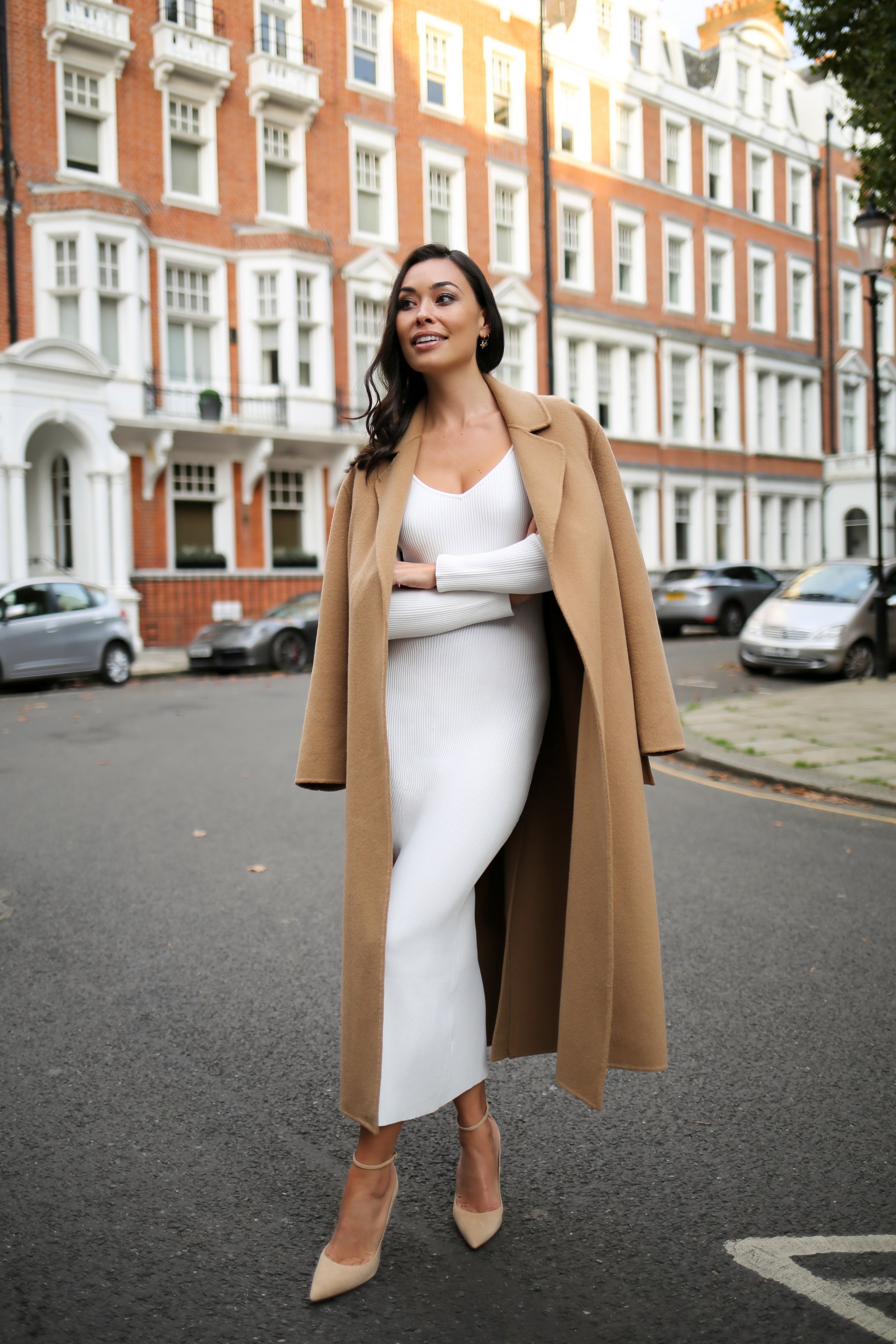 This elegant ivory white knit dress will be a staple in your wardrobe for years to come. It fits like a glove and looks flattering on any figure. Wear it with heels, a gorgeous camel coat or blazer draped over the shoulder.